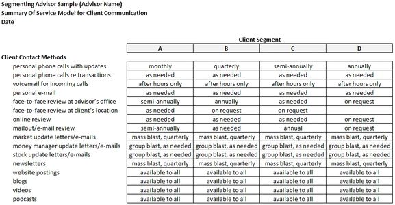 A well articulated, written business model is a valuable tool for advisors at all stages of their career. Advisors having a deeper understanding of their own practice and who it serves best, will lead to sustainable relationships based on a win-win business model. I define an advisor’s business model as the articulation of who the advisor’s most compatible clients are, the services and products that the advisor offers those clients, how those products/services are provided, how clients are charged and how the advisor is paid. I show how advisors in all stages of their careers can benefit from a well-defined business model, even those about to retire. The handbook provides a checklist process to quickly articulate, develop or analyze an existing or desired unique business model. I provide an example of the process by showing completed checklists based on the final years of my practice and the resulting printed business model. I include discussions regarding many of the required decisions as we progress through the checklists for the various business model components. I also discuss household capacity of practices and provide an analytical tool and checklists to facilitate the segmentation of clientele. This handbook includes appendices “Why Advisors are Not Interchangeable”, “Why Many Revenue Sharing Advisors Have and Deserve Above Average Incomes” and “The Average Advisor of Various Financial Advice Channels.”